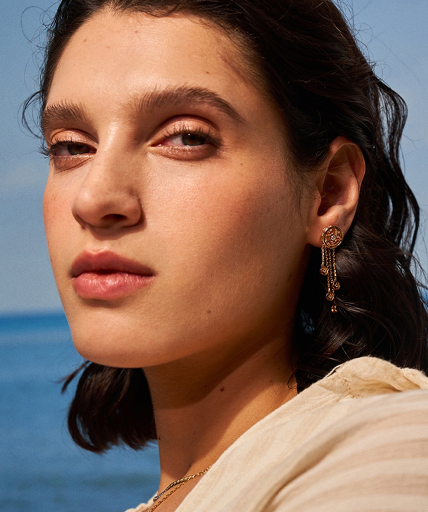 These striking earrings are a modern take on traditional Chinese coin motifs. Four champagne zircon stones are artfully arranged to subtly evoke the shape of a coin, adding depth and dimension. The tassels, adorned with smaller coin accents, create a dynamic, layered effect that exudes both elegance and individuality. Each detail is meticulously crafted to highlight your unique personality and style.