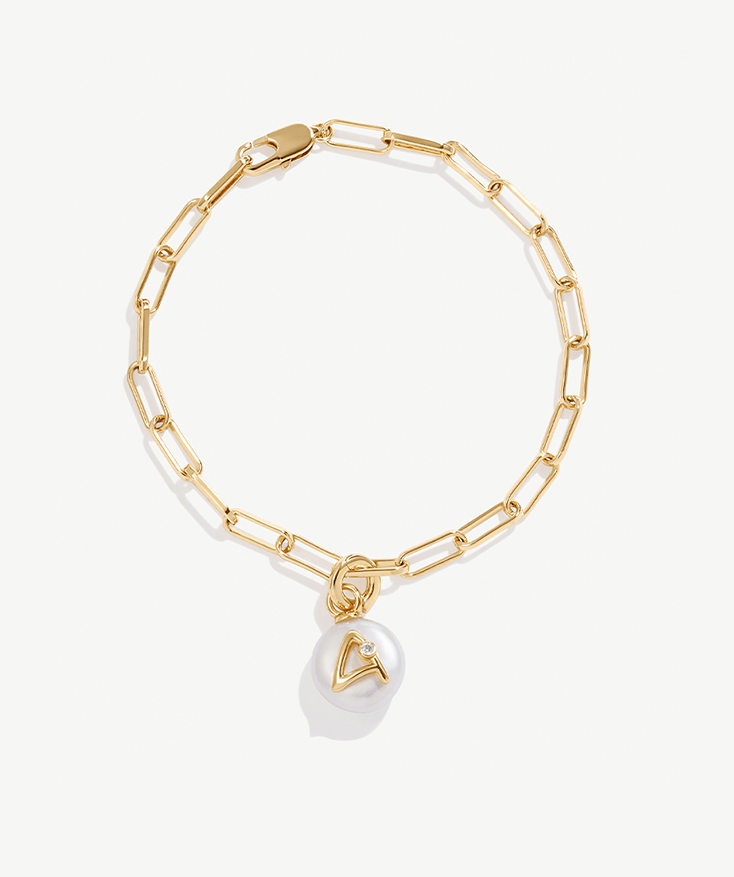 Unique natural freshwater pearls with individual letter designs symbolize personal expression. The adjustable clasp offers versatile styling, allowing for various combinations.