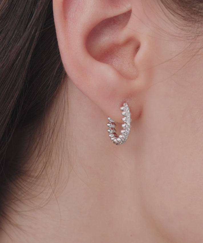 The classic huggie form is reimagined with sharp lines and subtle pavé shine, giving familiar shapes a modern edge.