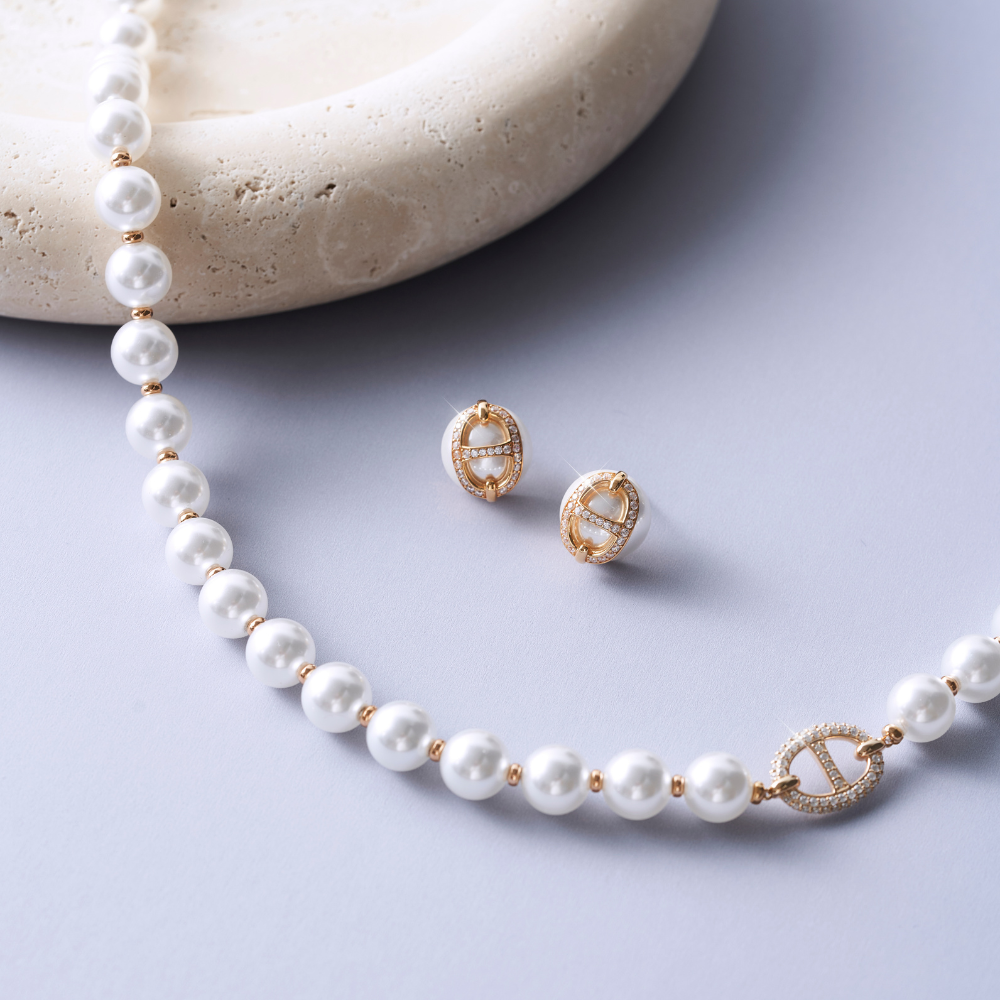 Translating the robust essence of anchor chains into wearable art required a delicate balance. Our designers focused on blending fluid curves with bold lines, ensuring each piece exuded both grace and strength. The incorporation of pavé diamonds adds a touch of brilliance, while lustrous pearls infuse elegance and sophistication. The use of white Mother-of-Pearl, known for promoting inner peace and intuition, adds depth and meaning to each design.