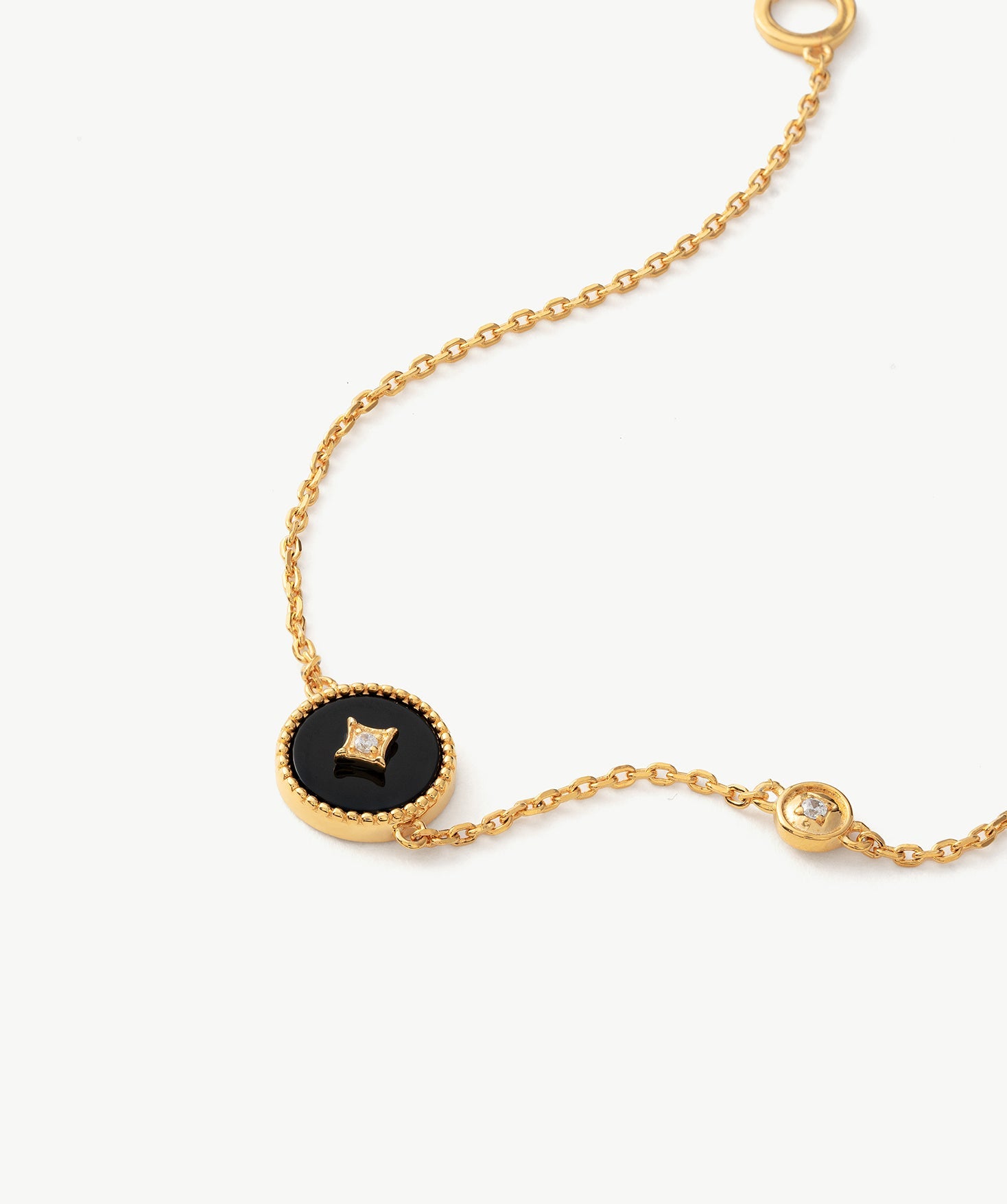 Gold Vermeil Black Agate Bracelet with Pavé Center – Aura Collection | MaiaMina