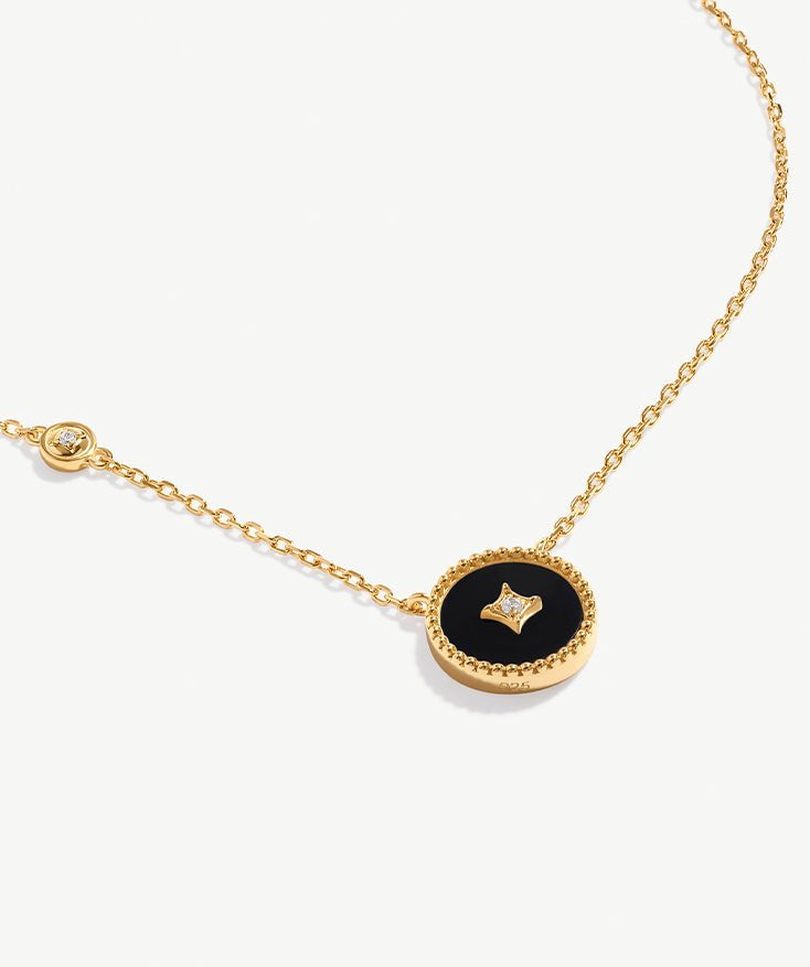 Inspired by the ancient Chinese copper coin, the Aura Collection necklace blends cultural heritage with contemporary elegance. Each piece in this collection features a unique gemstone, set in 18ct Gold Plated Vermeil on Sterling Silver.