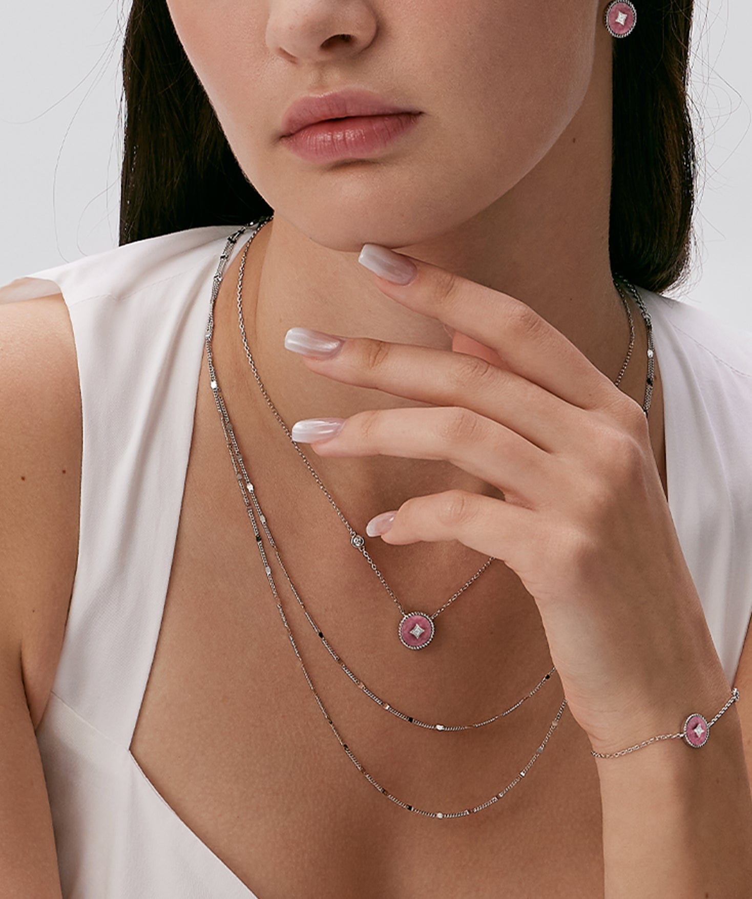 オーラコレクションのブレスレットは、それぞれが独自の魅力と意味を持つ宝石の美しいハーモニーです。ホワイトマザーオブパール、マラカイト、タイガーアイ、レッドアゲート、ブラックアゲートが、スターリングシルバーに18金メッキのヴェルメイユでセットされています。